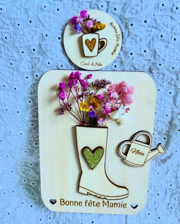 Une jolie carte pour souhaiter une bonne fête aux mamans. Fleurs séchées véritables, collées une par une à la main.
